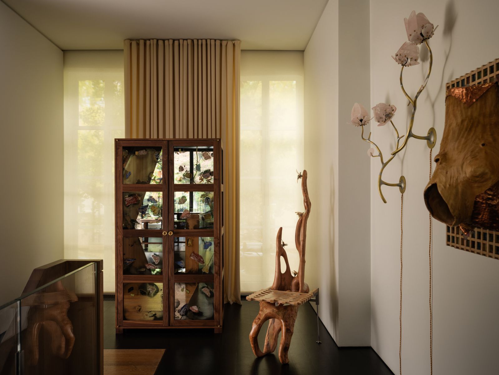 在《Basic Instinct》的現場,你會很直覺地捕捉到一個訊息,映入眼簾的家具作品都與自然息息相關,也許是因為Chen Chen & Kai Williams在設計上,傾向於先捕捉自然材料帶來的驚喜,再混和嚴謹的木工或金屬工藝。例如「Modern Forestry Chair / 現代林業椅」就將這一特點嶄露無遺。