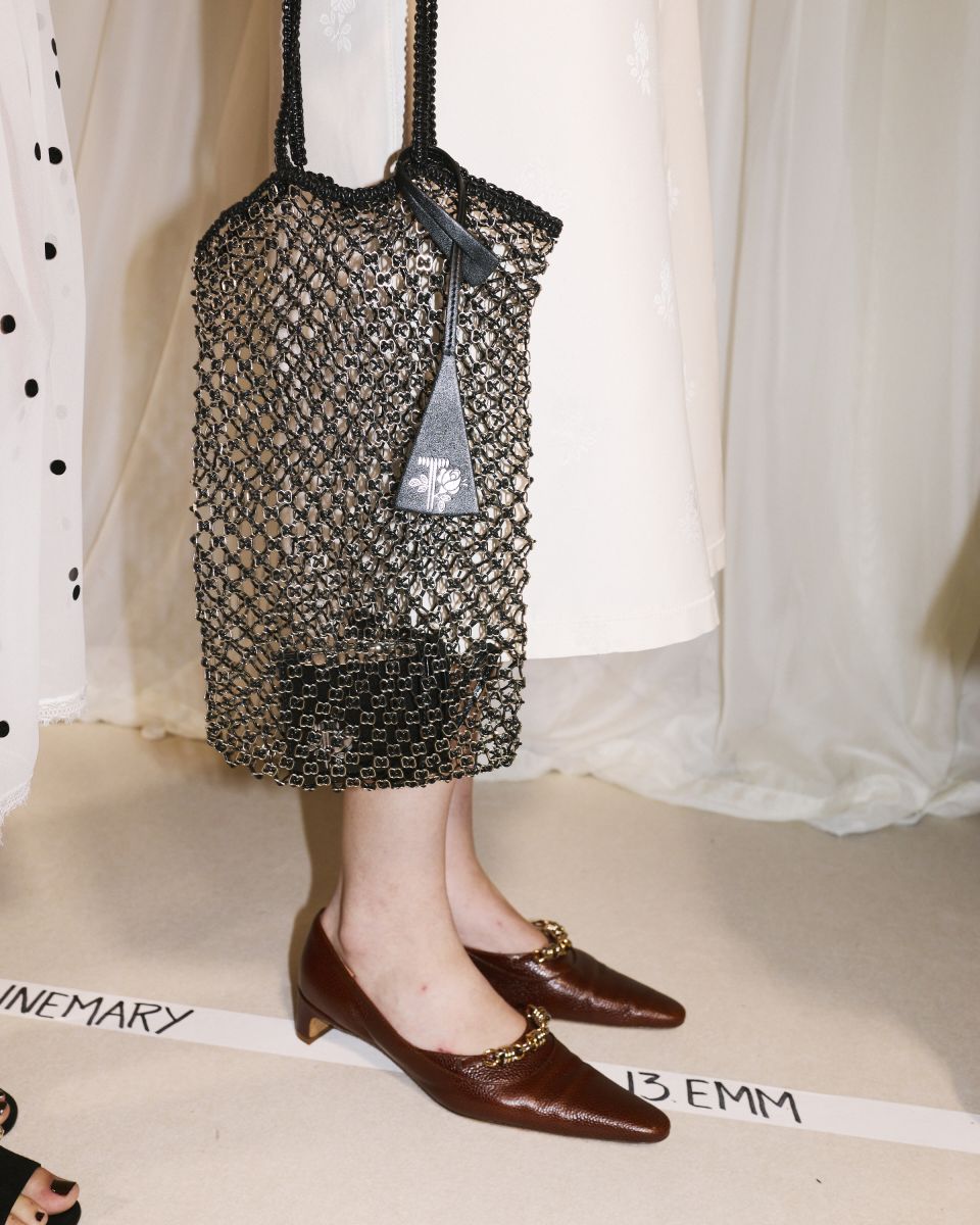 經典的Lee Radziwill包以更輕盈俐落的造型回歸,本季部分款式加入金屬提把與珠飾點綴。Romy水桶包則以仿舊皮革呈現休閒氛圍,鏈條網袋與鉤針編織包則展現隨性感。