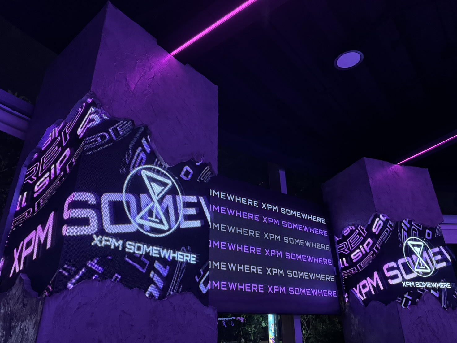 XPM somewhere以「Chill. Sip. Social. Repeat.」為理念,強調白天與夜晚截然不同的節奏。白天時,透過大片落地窗感受陽光,營造出放鬆的慢生活;夜幕降臨,音樂與酒精帶動氛圍轉換,人群在此交會,形成專屬於城市的夜生活節奏。店內搭配大面積LED與VJ影像,播放Hip-Hop、K-Pop、華語與西洋流行等多樣曲風,讓不同偏好都能找到共鳴。