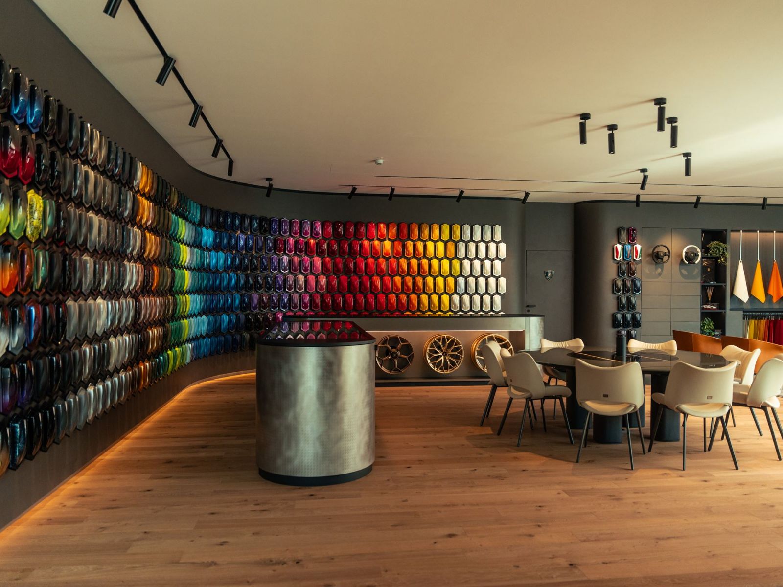 除了神話靈感,部分顏色也與客戶故事或品牌歷史有關。例如「Verde Scandal」誕生於1960年代末,一位顧客想要一種從未出現過的綠色,並以自己裙子的顏色作為樣本;紫羅蘭色「Viola 30th」則為紀念品牌成立30週年而設計;鮮黃「Giallo Maggio」是為慶祝品牌成立50週年而推出,可以說藍寶堅尼的色彩庫也是一段歷史紀錄。