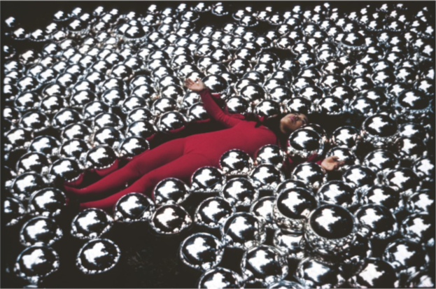 Yayoi Kusama inmitten ihrer Installation Narcissus Garden auf der 33. Biennale von Venedig, 1966, © YAYOI KUSAMA