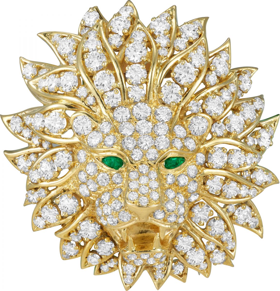 本次來台的作品之一的Lion échevelé可轉換式胸針,於1976年面世,由黃K金、祖母綠與鑽石製成。