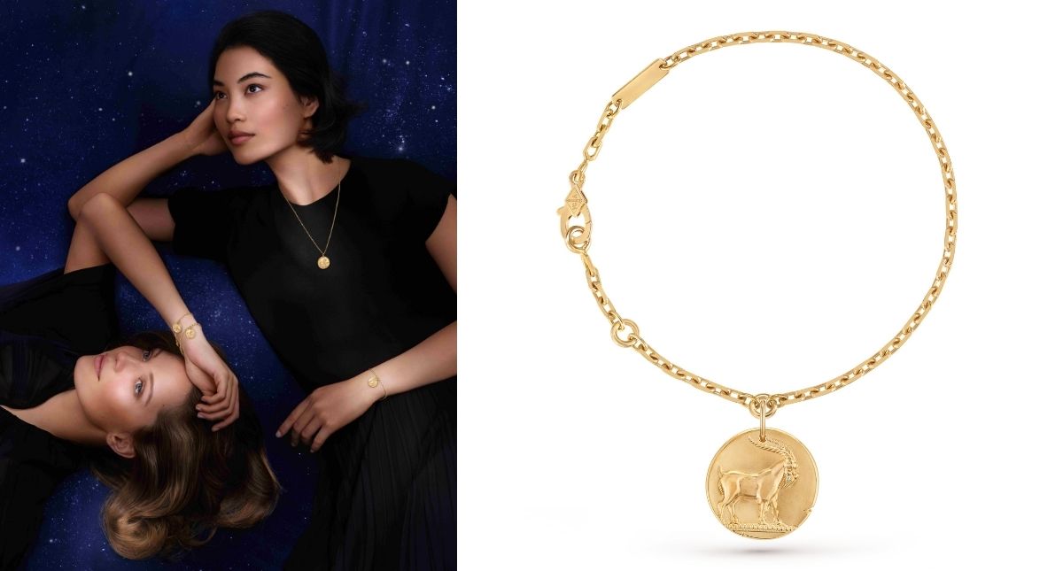 Van Cleef & Arpels(梵克雅寶)以黃道12宮為題的Zodiaque系列,其圓幣狀的吊墜,也讓人想到人們對許願水池的寄託,在1950年代誕生便成為「幸運守護」的熱門品項。並歷經1970年代更趨碩大的作品,有鑲嵌木材、鑽石、珍珠母貝和裝飾寶石的吊墜、手鍊、項鍊、胸針、皮帶甚至鑰匙圈等;至2018年的Zodiaque Lumineux腕錶系列;再到2021年淬煉成一套結合縐紋玫瑰金及多種裝飾寶石的12款長項鍊,星座符號在今年2026年,以更加符合日常配戴需求的樣貌,保留圓幣狀吊墜的形式,推出造型簡約的金質圓墜手鍊。